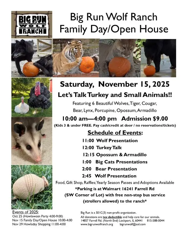 Big Run Wolf Ranch is open to the public for family days and open houses. Come see wolves, our tiger and bear, and more! There’s plenty of fun for the whole family with food, drinks, and raffles.